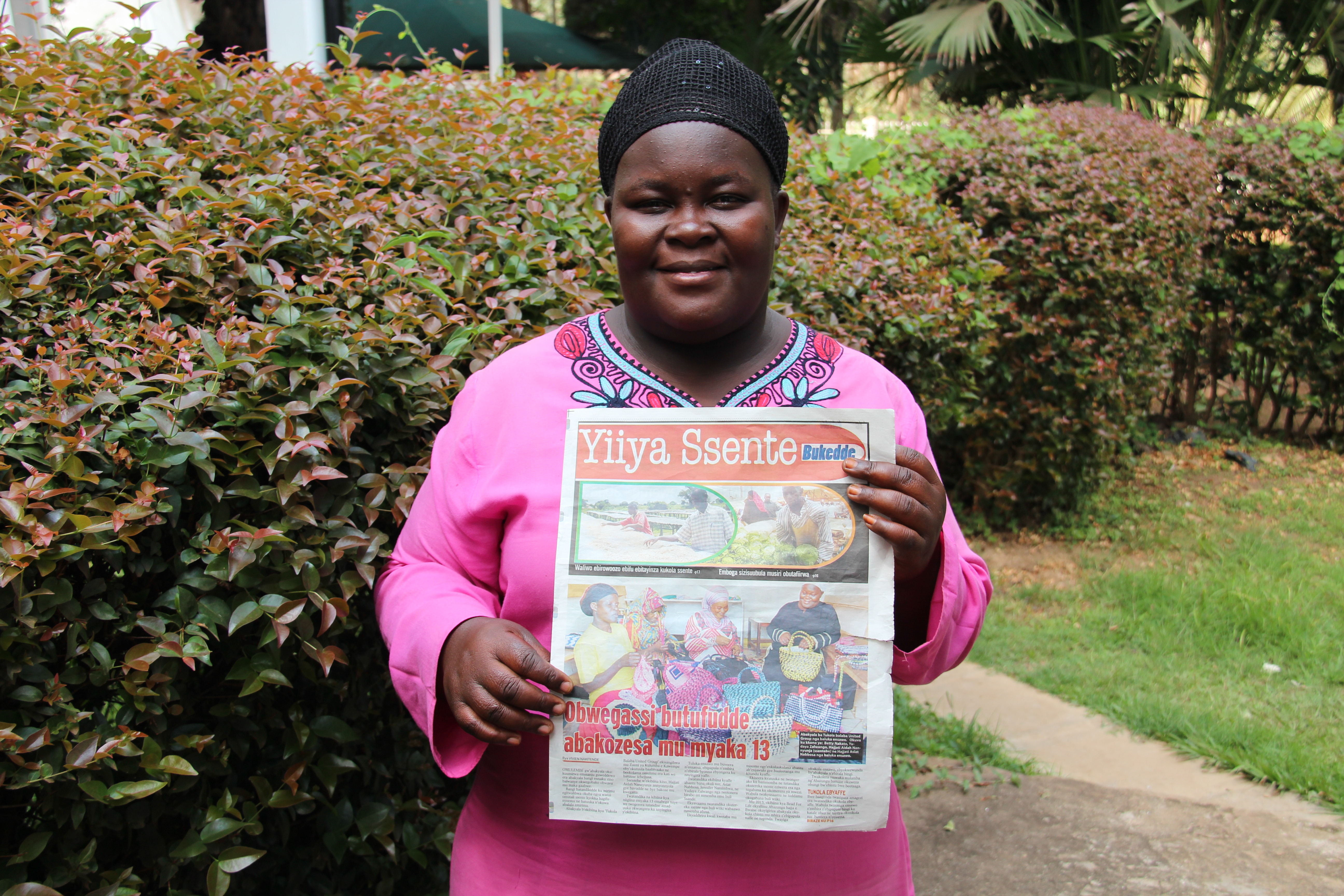 Beatrice and Evelynn were waiting expectantly for me in the inventory room when I arrived and from behind Beatrice’s back, she pulled out one of Uganda’s daily newspapers titled “Yiiya Ssente”.  Guess who was on the cover?…..   BeadforLife’s very own, Aidah Nannyunja!
